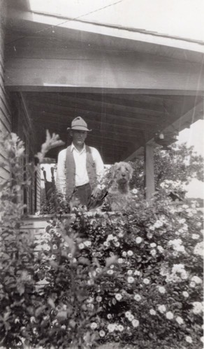 Detail from photo of Will Murphy and Tough the dog, about 1929