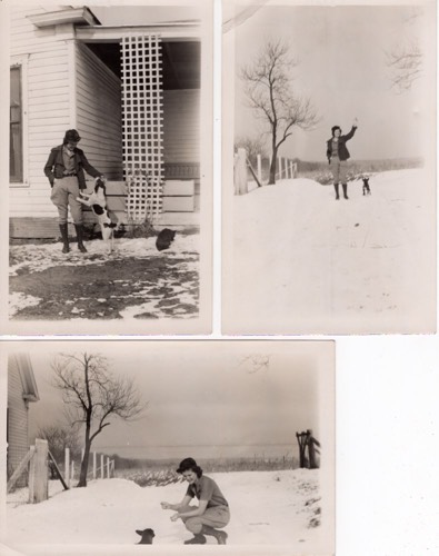 Snapshots of Wanda Rager playing with a dog in the snow, 1 February 1940.