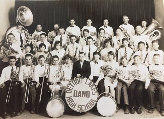 Forest Pfeifer in Detroit Lakes (MN) High School band. He is the clarinetist with striped tie at center, behind the man in the dark jacket.
