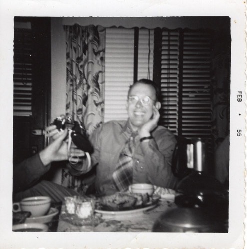 Forest Pfeifer at a dinner party, February 1955