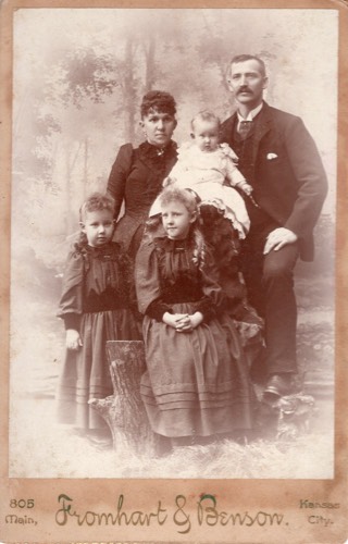 Rachel (Peterka) Wolf & Crist Wolf with daughters (L-R) Ruby, Mamie, and Edna, taken in Kansas City between 1892 and 1895.