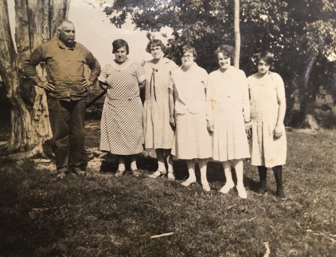 David Edward Rodgers with daughters (L to R in reverse age order): Grace, Mary, Lottie, Hazel, and Maude.