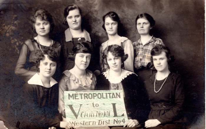 Hazel (Rodgers) Rager at lower right. She is wearing a wedding ring, so this photo was likely taken in 1918 or later.
