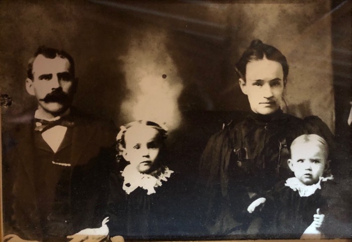 David Edward Rodgers and Grace Nanette (Whitted) Rodgers with their two oldest daughters, Maude and Hazel, about 1900.