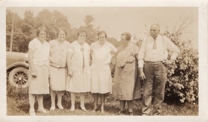 David Edward Rodgers with daughters (L to R in reverse age order): Grace, Mary, Lottie, Hazel, and Maude.